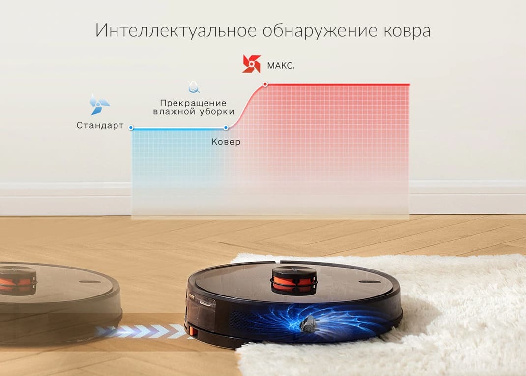 Xiaomi Lydsto R1 Robot Vacuum Cleaner выполняет комплексную уборку в квартирах со сложной планировкой и неоднородными напольными покрытиями. Такая возможность обеспечивается благодаря распознаванию ковров: во время сухой уборки робот автоматически повышает силу всасывания на коврах, а во время влажной – предусмотрительно объезжает их, независимо от отметок на карте.