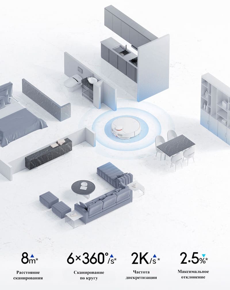 Лазерная навигация, распознает ваш домашний макет с большой точностью