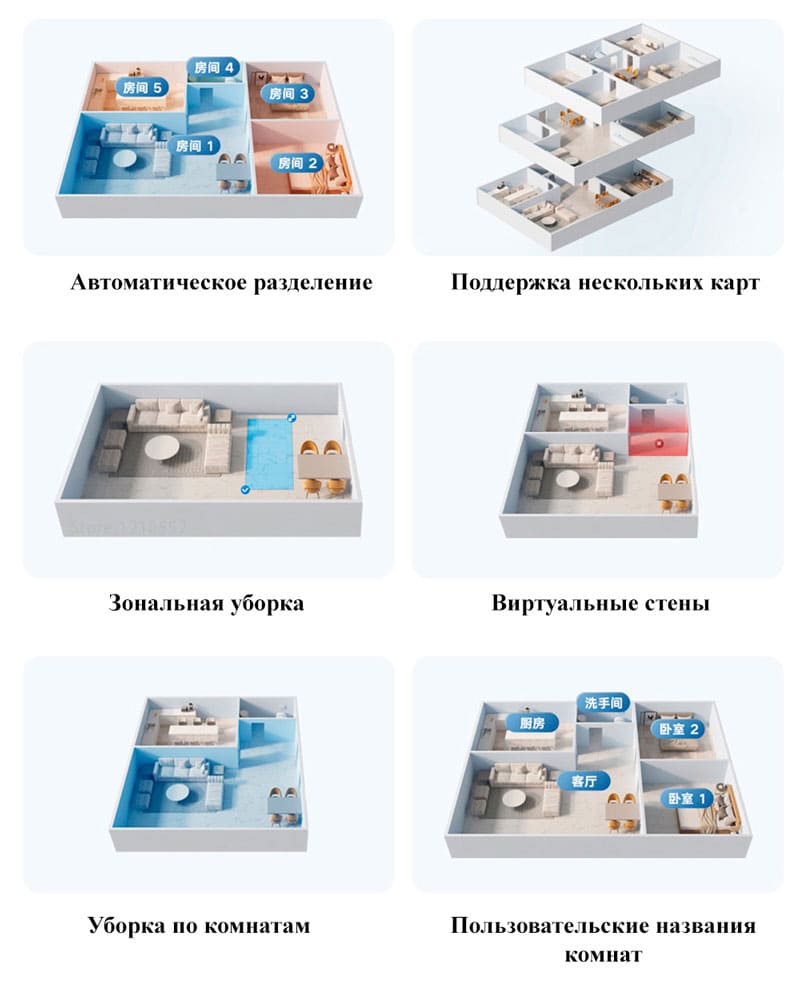 Подключение к приложению Home может создать точную домашнюю карту и легко осуществить индивидуальную очистку, тем самым улучшая эффективность очистки.
