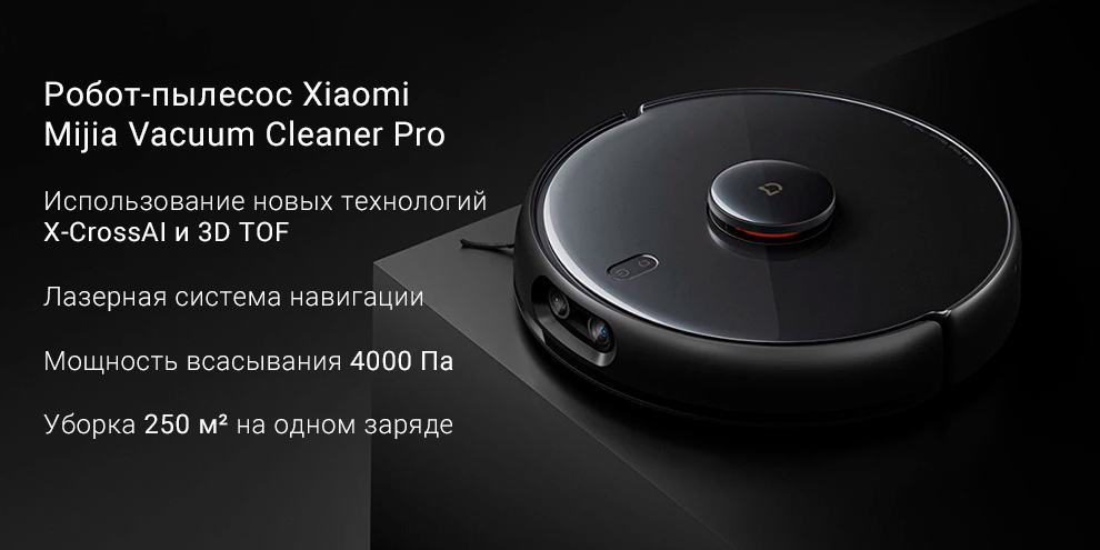 Робот-пылесос Mijia Vacuum Cleaner Pro использует новые технологии X-CrossAI и 3D TOF, которые позволяют ему без труда обходить все препятствия на своем пути. С помощью лазерной системы навигации он сканирует окружающее пространство, формирует карту помещения и прокладывает наиболее оптимальный маршрут. Мощность всасывания достигает 4000 Па. На одном заряде гаджет может убрать помещение площадью 250 м².