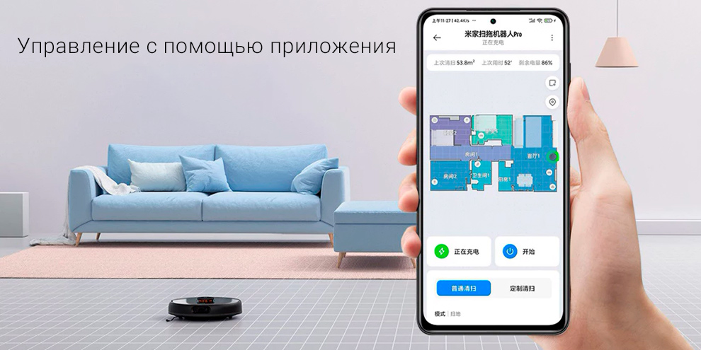 Если подключить робот-пылесос к мобильному приложению, то в нем пользователь может дистанционно управлять работой пылесоса, находясь за сотни километров от дома. При необходимости можно поставить виртуальные стены и запретные зоны, которые устройство будет обходить стороной.