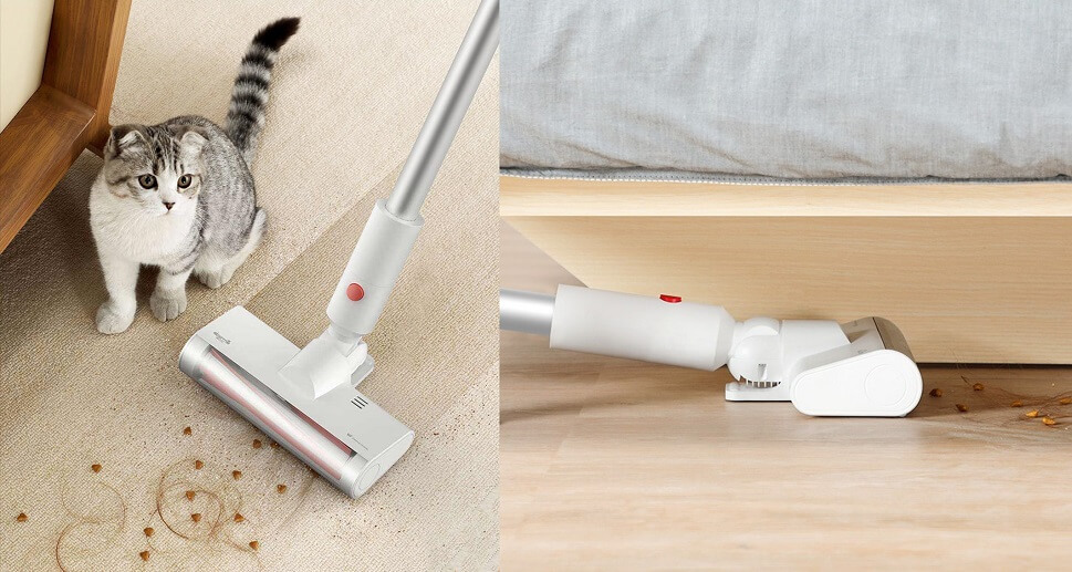 Сбалансированный беспроводной пылесос продается в стильном белом цвете. Он выполнен из двух материалов – ударопрочного пластика и алюминия. Благодаря матовому покрытию пластиковых вставок, на поверхности не собирается пыль, не остаются отпечатки пальцев.Разместив двигатель, АКБ и другие компоненты в подходящем месте, разработчики Сяоми добились смещения центра тяжести, более комфортного удержания. Рука пользователя не устает даже при длительной работе. Дополнен пылесос эргономичной ручкой, которая наклоняется под углом 60 градусов. Она снижает нагрузку во время уборки, позволяя добраться в труднодоступные места.