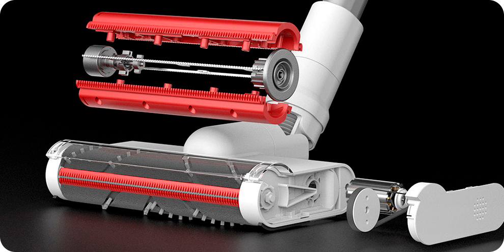 Мощный двигатель обеспечивает быстрое вращение для эффективной уборки. В центре валика расположено лезвие, разрезающее волосы, и защищает механизм от запутывания.