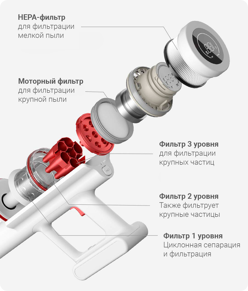 Мощность всасывания пылесоса – 26 кПа, а его электродвигатель работает на скорости 125 тысяч оборотов в минуту. Этого вполне достаточно, чтобы качественно вычищать грязь даже из швов и небольших щелей.