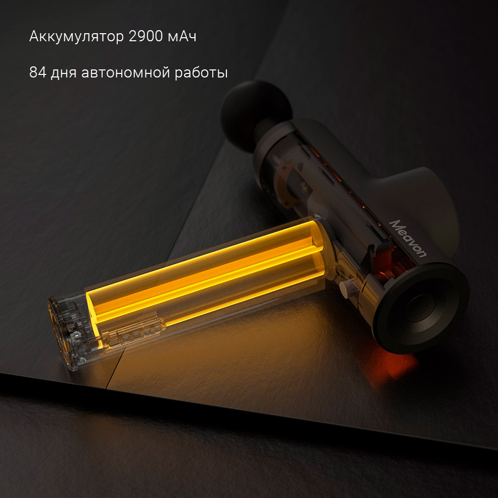 Xiaomi Meavon – это инновационный вид массажа на 5 различных скоростях, 84 дня автономной работы при мощности 3200 об/мин. Отличается низким уровнем шума: всего 45 дБ. Присутствует режим интеллектуального массажа, как у мастера, и профессиональный фитнес-режим для расслабления после тренировок.