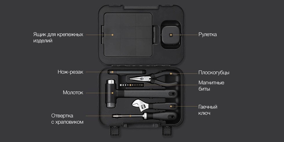 Этот хорошо организованный комплект поставляется в компактном прочном пластиковом футляре, который удобно расположиться в любом месте вашего дома, квартиры, гаража.