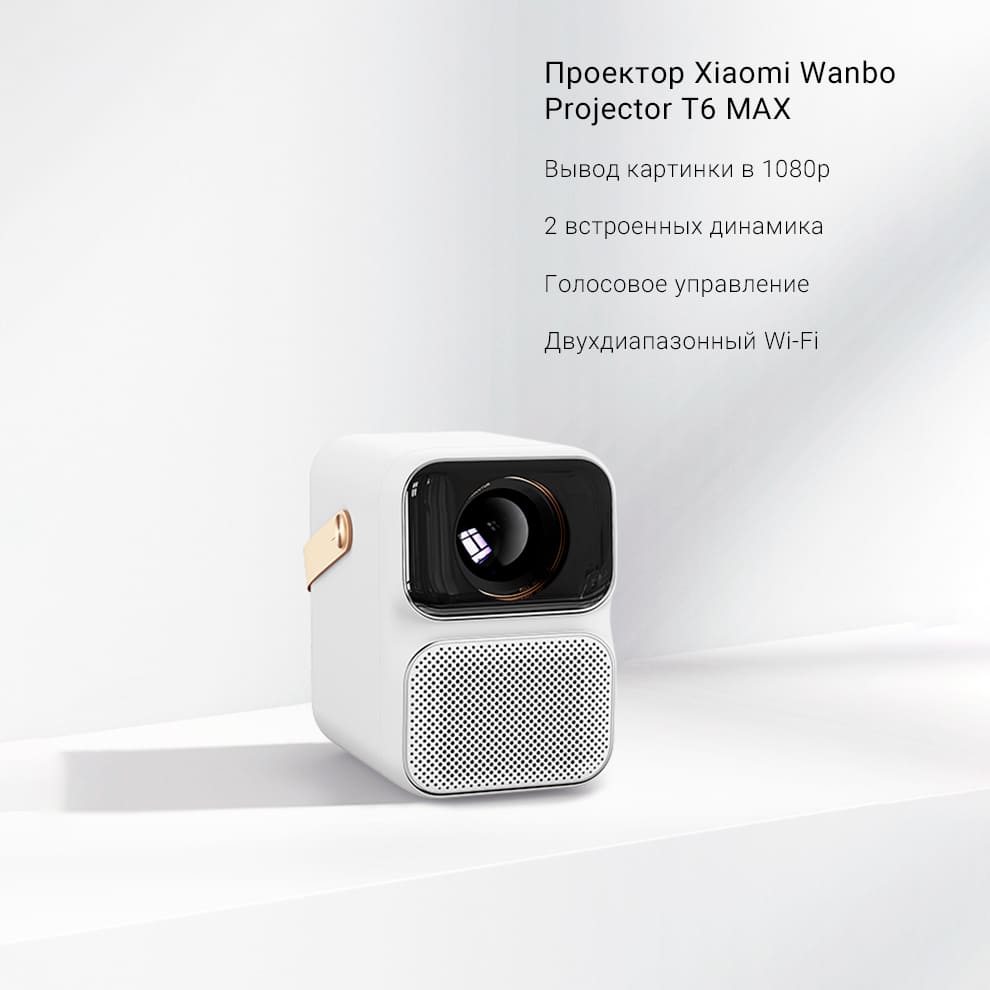 Wanbo Projector T6 MAX обеспечивает вывод изображения в формате 1080р. Поддерживается декодирование 4К. Предусмотрен умный интерфейс: Android 9.0 и Bluetooth 5.0. Возможно использование двухдиапазонного Wi-Fi. Проектор оснащен собственными динамиками, поэтому к нему не придется подключать колонки.