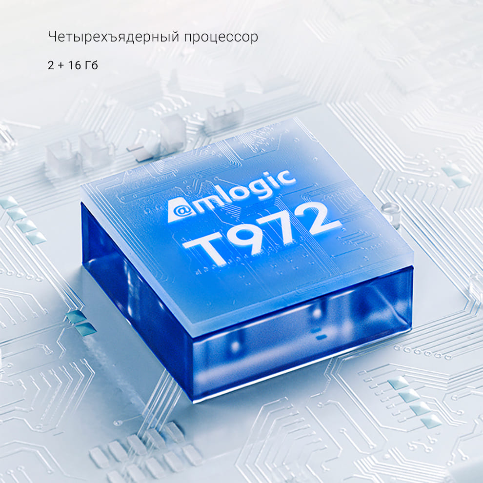 Девайс работает на основе четырехъядерного процессора AmIogic T972. Присутствует 2/16 Гб памяти. Проектор работает плавно и быстро.