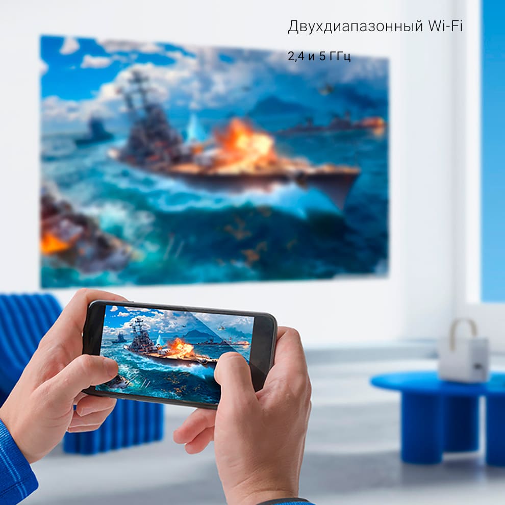 Wanbo Projector T6 MAX поддерживает двухдиапазонный Wi-Fi (2,4 и 5 ГГц). Вы получаете высокую скорость интернета 4G/5G, что особенно важно для игрового процесса.