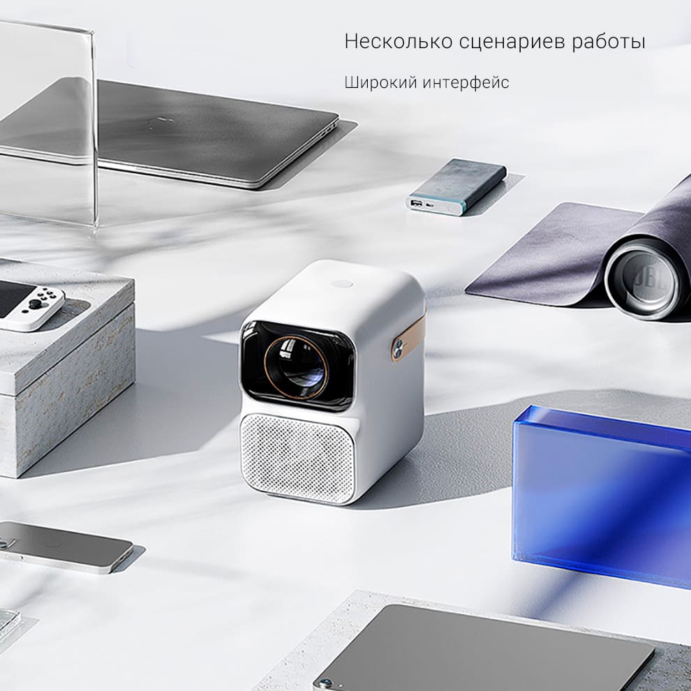 Благодаря широкому интерфейсу проектор можно использовать по совершенно разным сценариям. Он получил разъем для наушников 3,5 мм, AV-вход, 2 порта USB и HDMI-разъем. К нему можно подключить игровую приставку, аудиооборудование и не только.