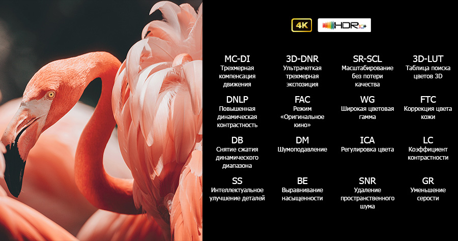 Интегрированная технология динамической компенсации MEMC обеспечивает просмотр высокоскоростного видеоконтента, такого как спортивные трансляции, игры, экшн кино и т.д. без размытия, дрожания экрана, ореолов.